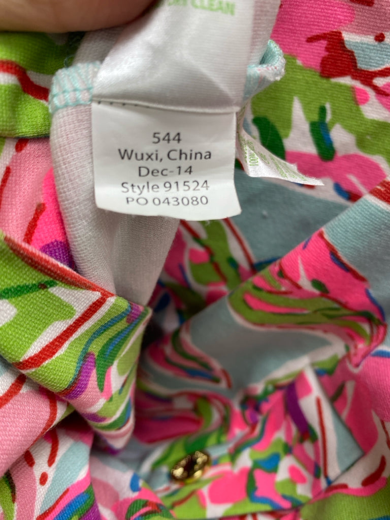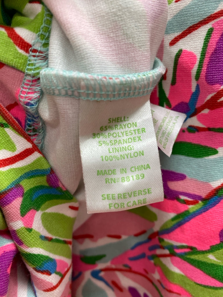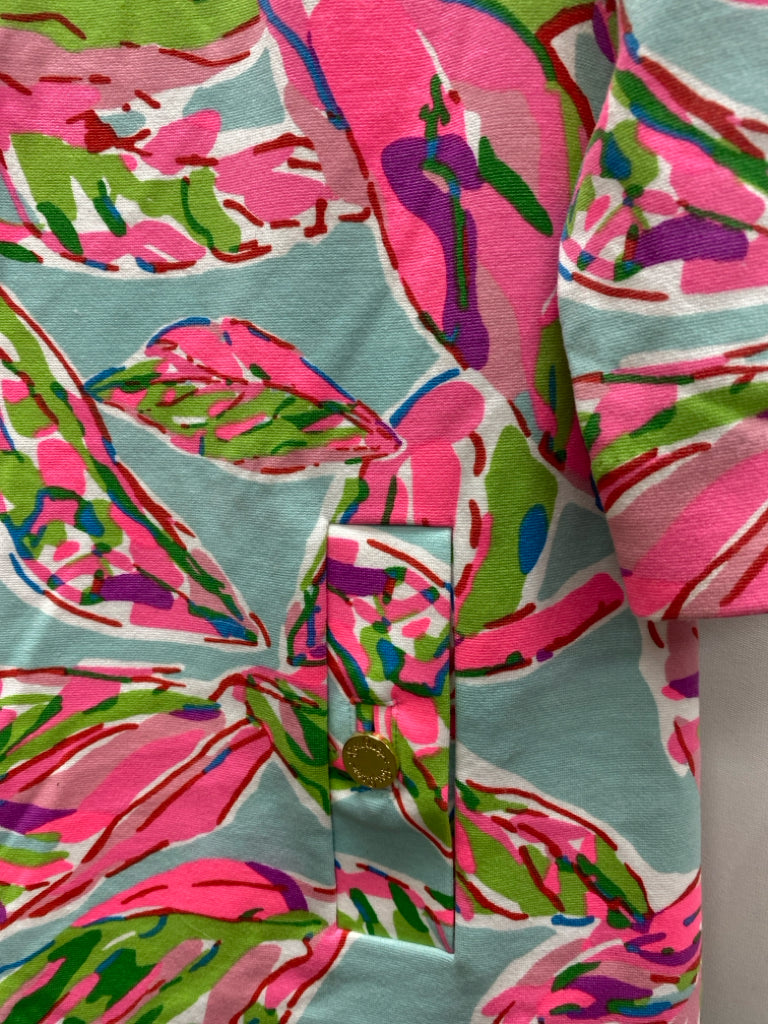 LILLY PULITZER Size L Blue/Green Neon Pnk Leaves Ladies Dress