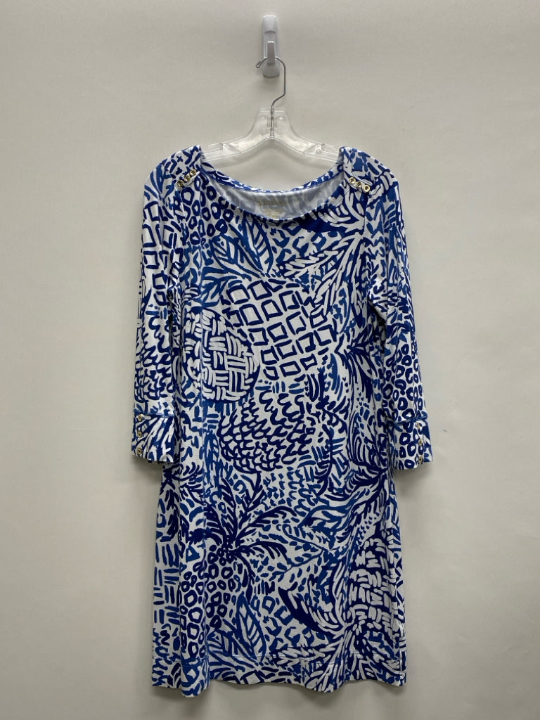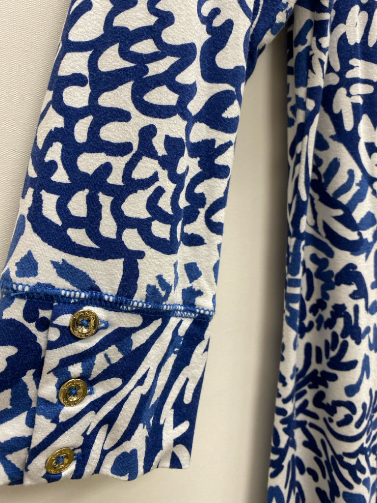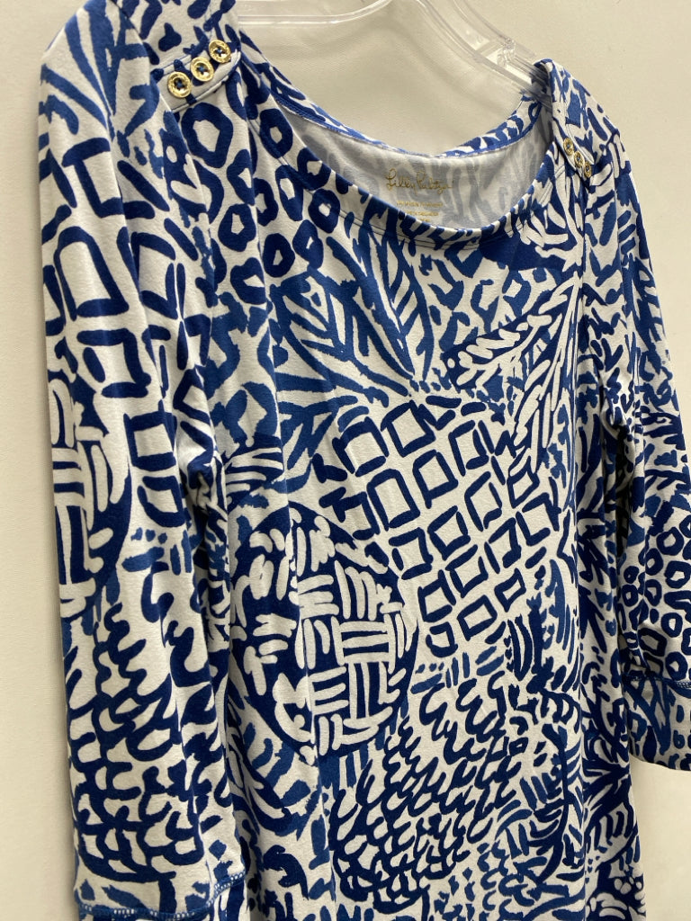 LILLY PULITZER Size L Blue White Assorted Print Ladies Top