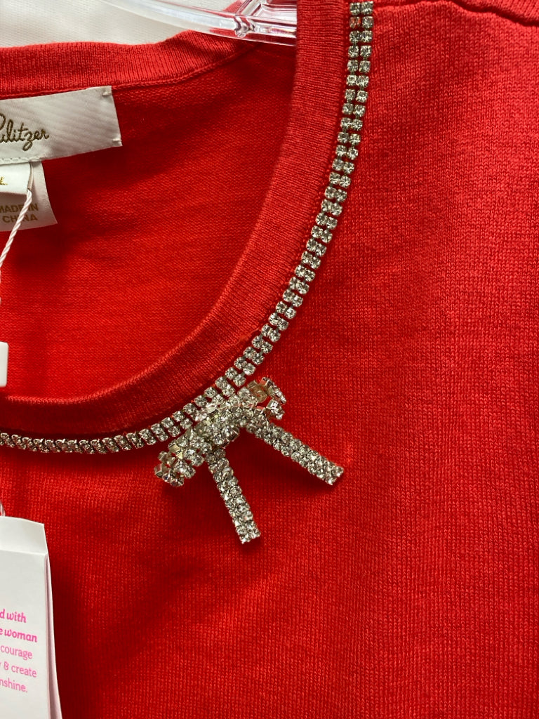 LILLY PULITZER Size L Red Rhinestone Ladies Sweater