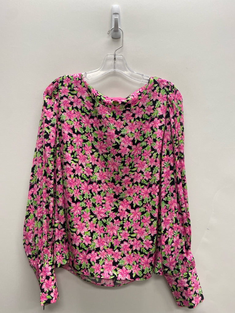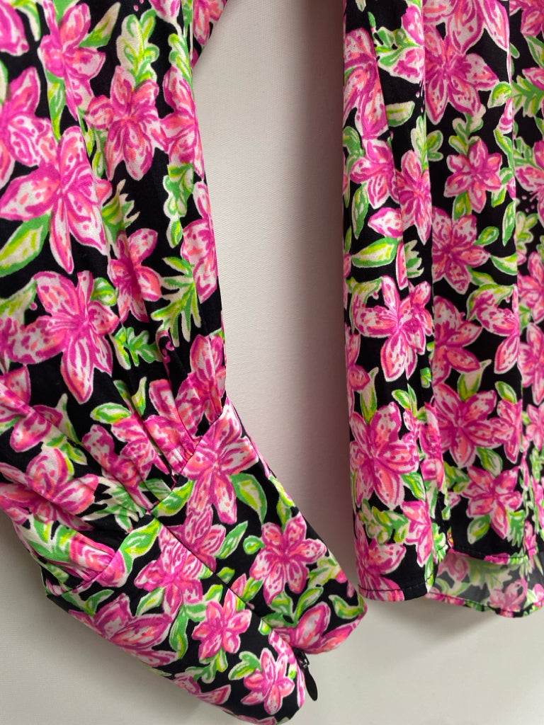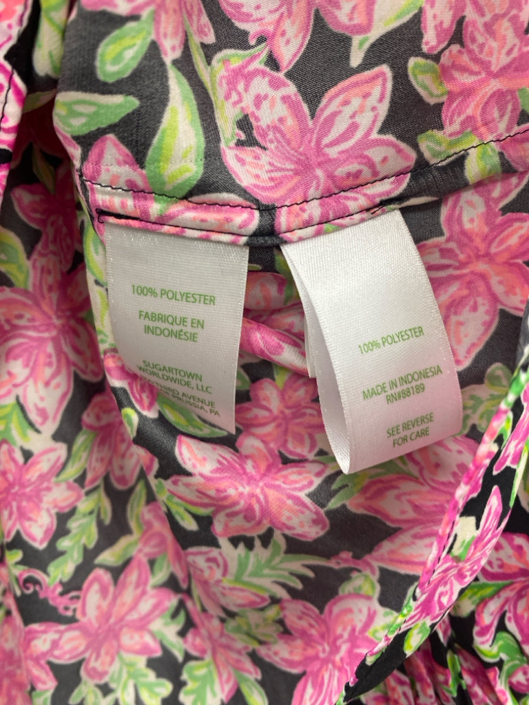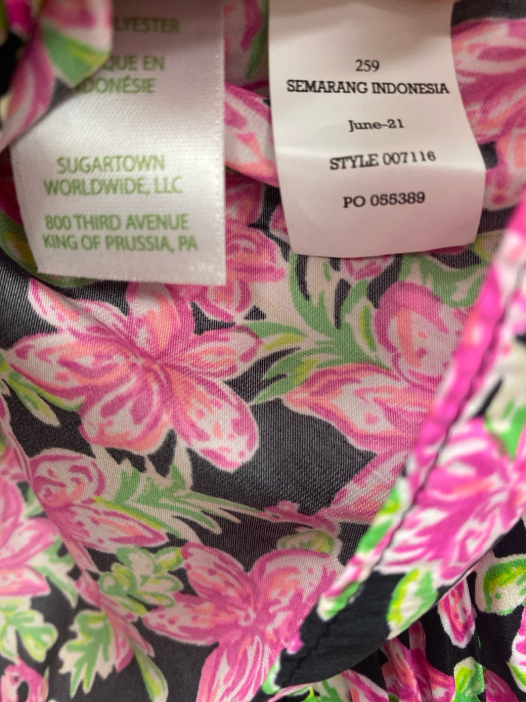 LILLY PULITZER Size M Black Pink/Green Flowers Ladies Top