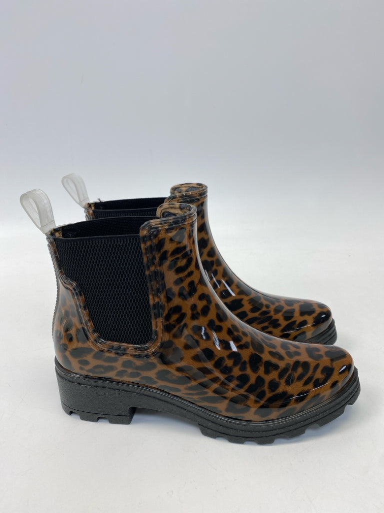 London Fog Size 8 Brown Black Animal Print Rubber Boots