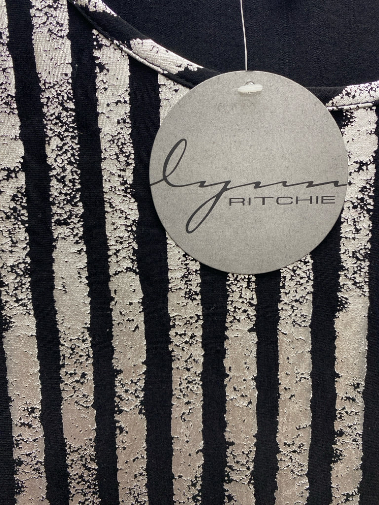 Lynn Ritchie Size L Silver Black Stripes Tunic Ladies Top