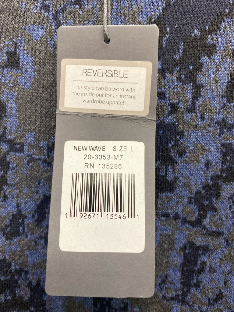 Lysse' Size L Black Blue/Gray Abstract Reversible Ladies Sweater