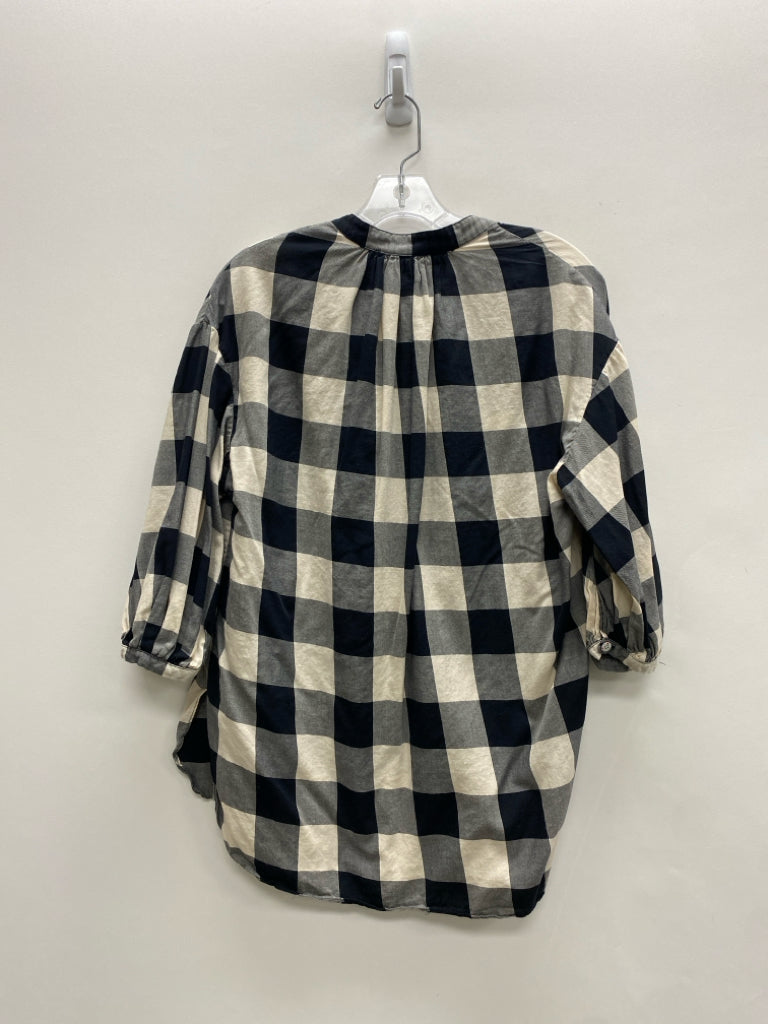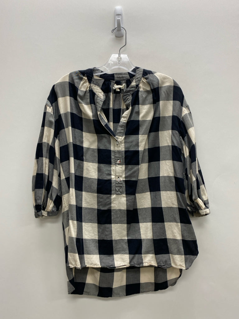 Mara Hoffman Size S Cream Black Buffalo Check V Neck Ladies Top