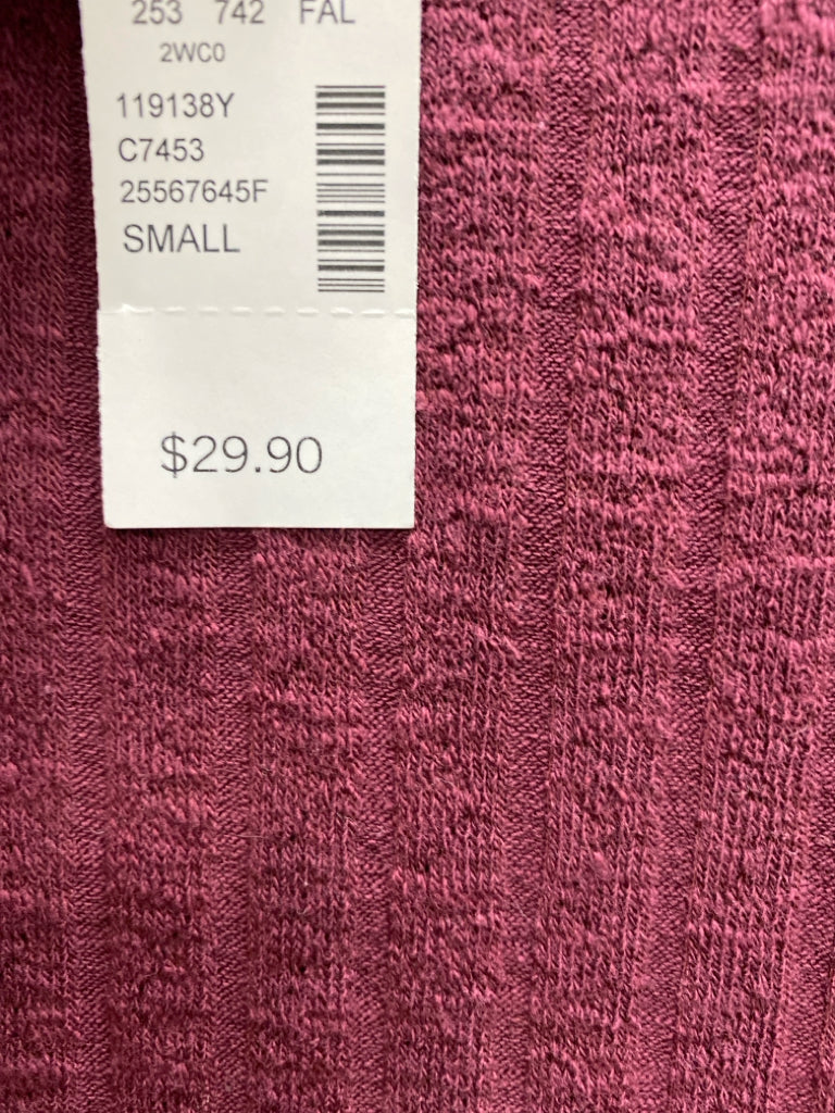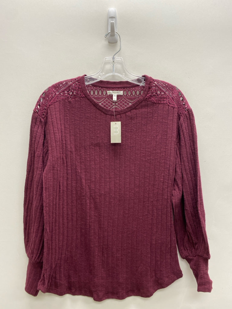 maurices Size S Burgundy Ribbed Puff Sleeve Ladies Top