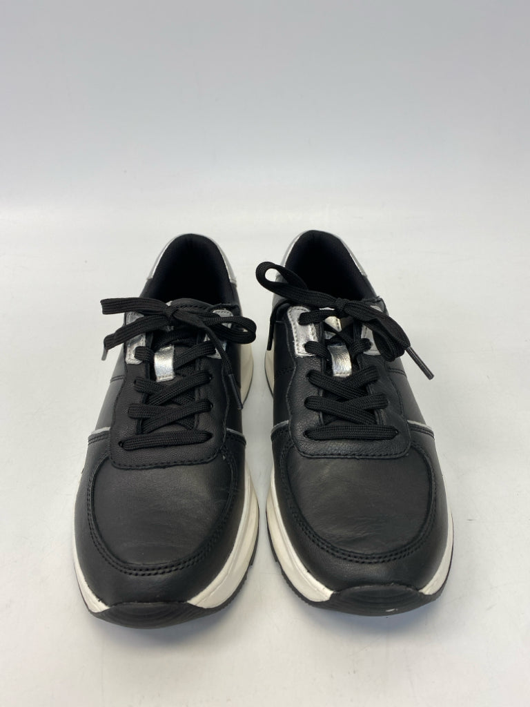 Naturalizer Size 7 Black Silver/Wht Lace-up Leather Sneakers