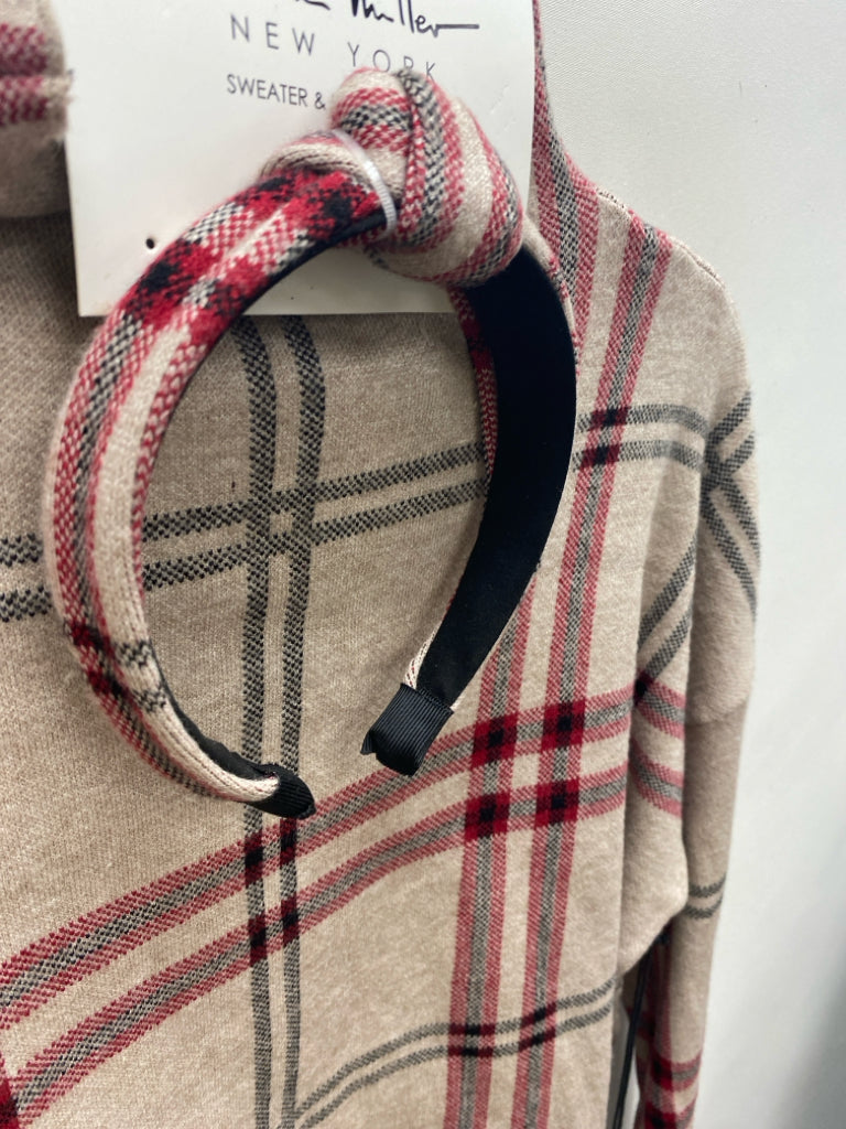 Nicole Miller Size XL Tan Red/Black Plaid Ladies Sweater