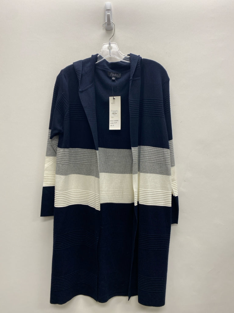 Papillon Size M Dark Navy Gray/White Ribbed Drape Hooded Ladies Sweater