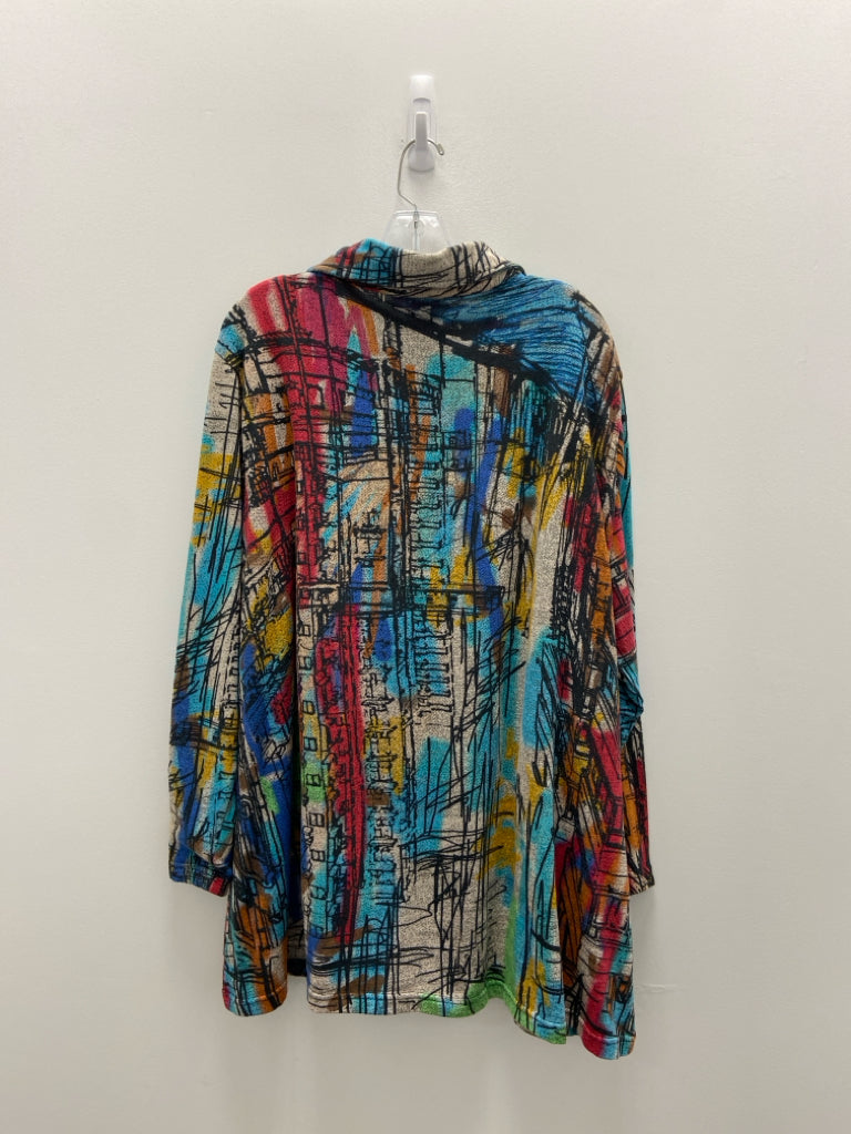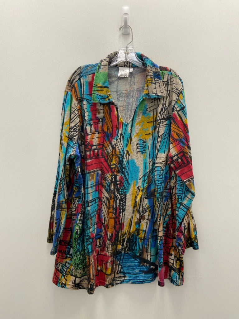parsley&sage SIZE 2X Beige Black/Multi Abstract V Neck Plus Size Top