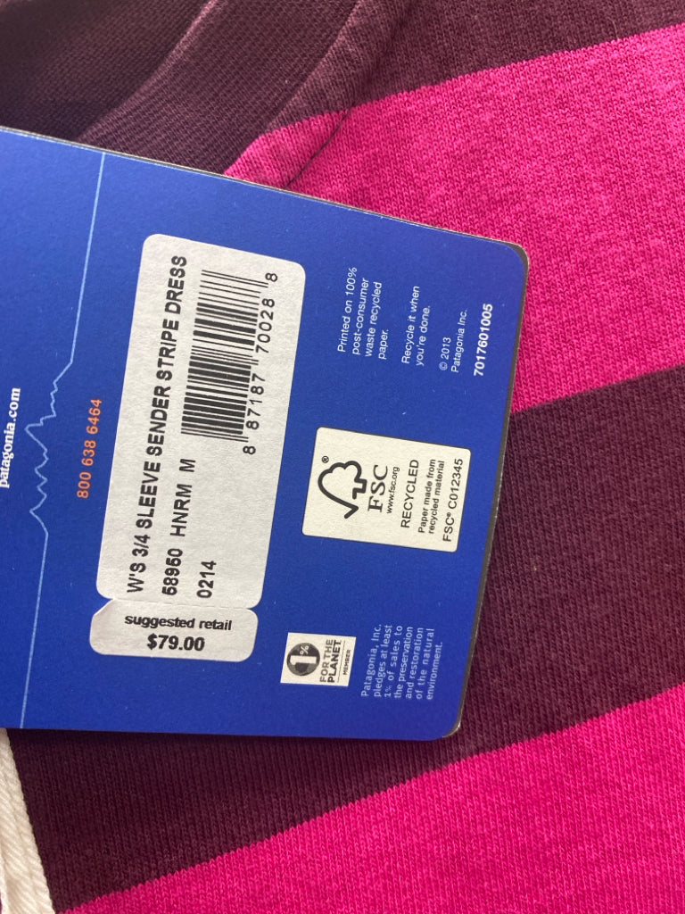 Patagonia Size M Purple Pink Striped 3/4 Sleeve Ladies Dress