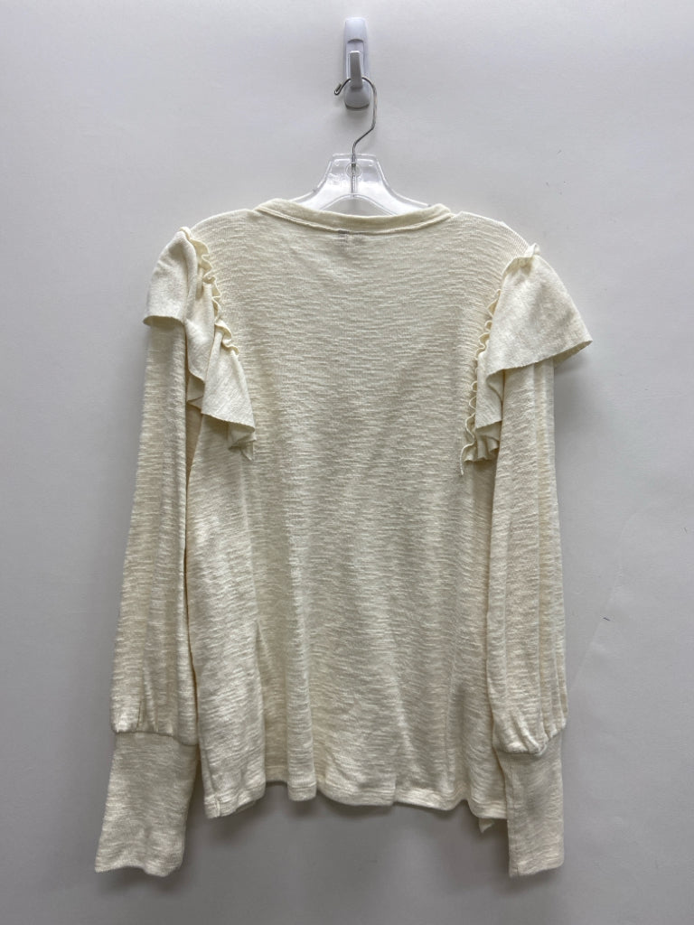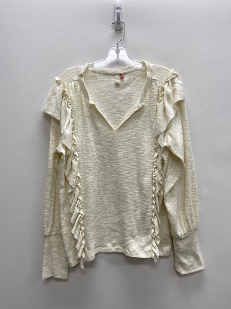 Pilcro Size L Ivory Ruffles V Neck Ladies Sweater