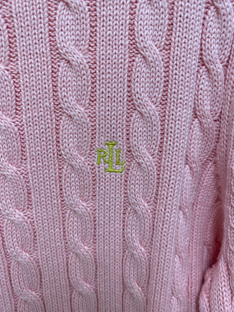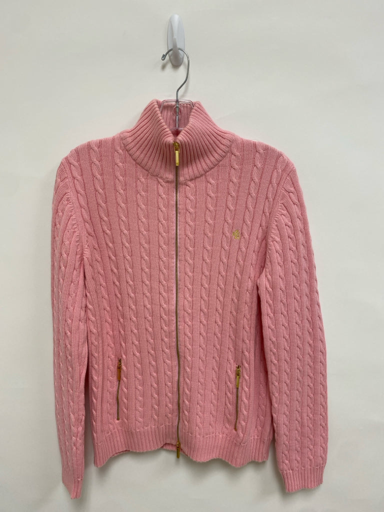 Ralph Lauren Size L Pink Cable Knit Zip Down Ladies Sweater