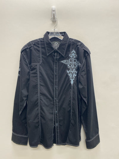 Roar Brand Size XXL Black Blue/White Striped Button Up Men's Long Sleeve Shirt