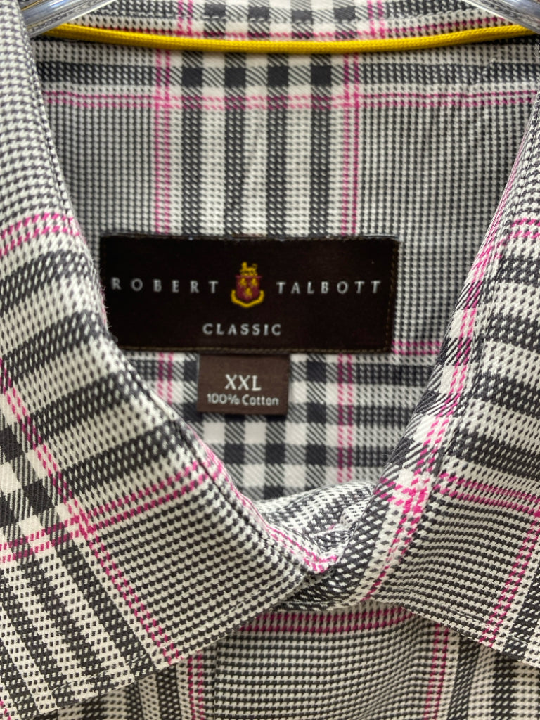 Robert Talbott Size XXL White/Black Pink Squares Men's Long Sleeve Shirt
