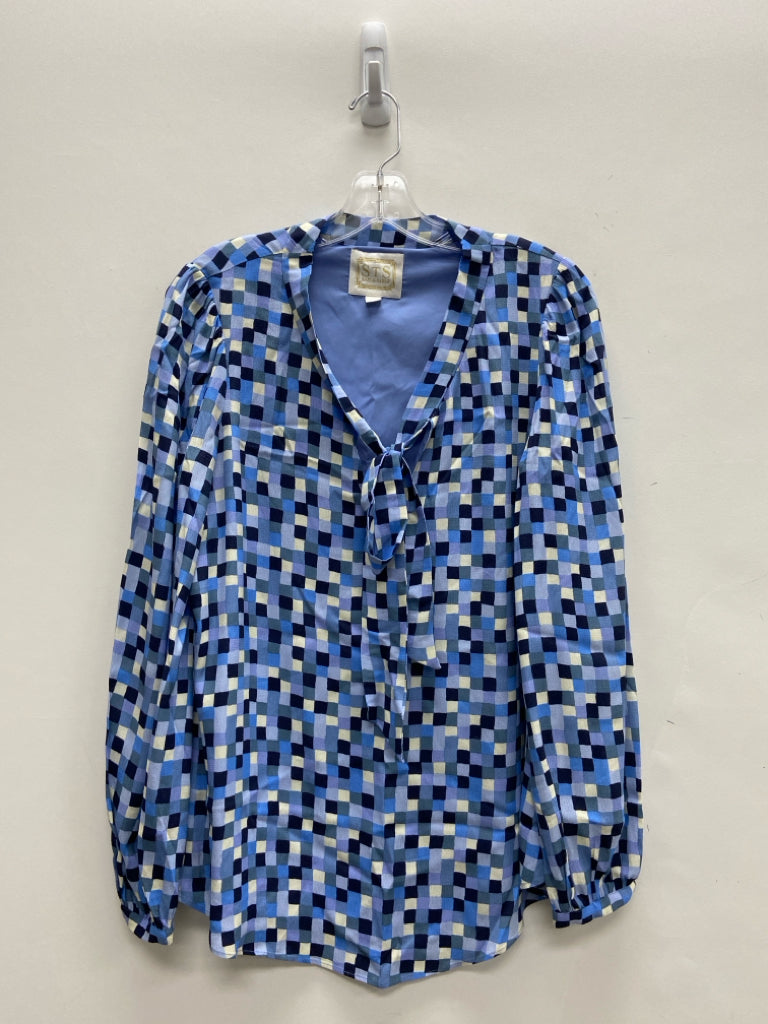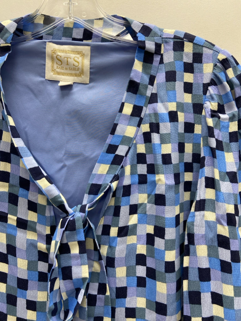 Sail to Sable Size M Blue Navy/Cream Checkered Ladies Top