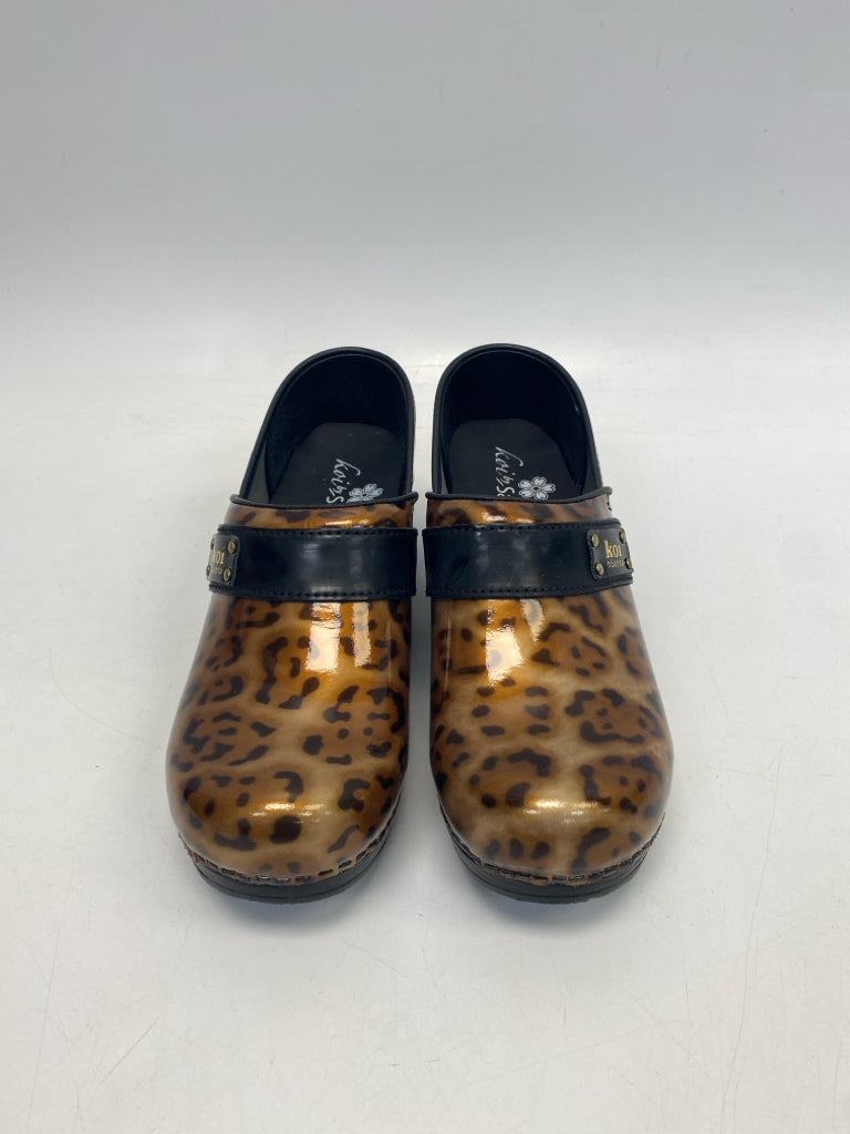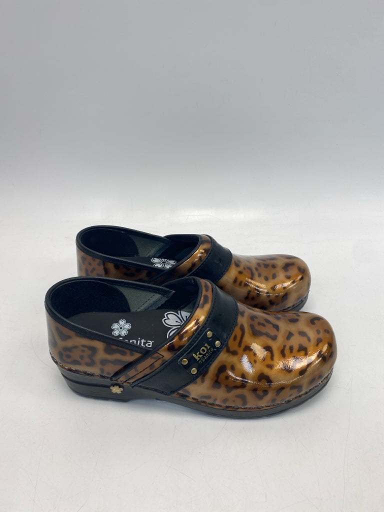 Sanita Size 39 Brown/Amber Animal Print Clogs