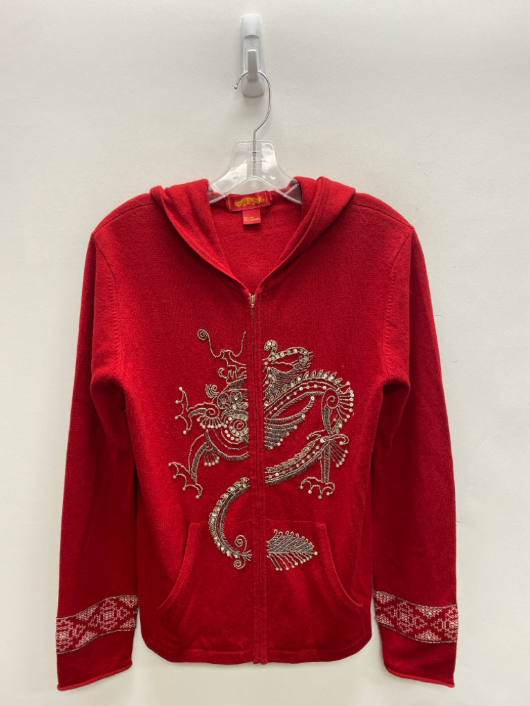 Shanghai Tang Size XL Red Silver Dragon Hooded Cashmere Blend Ladies Sweater
