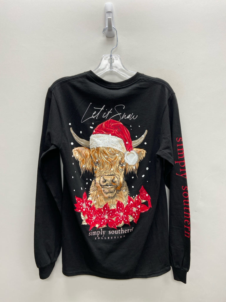 Simply Southern Size S Black Brown Cow Ladies Top