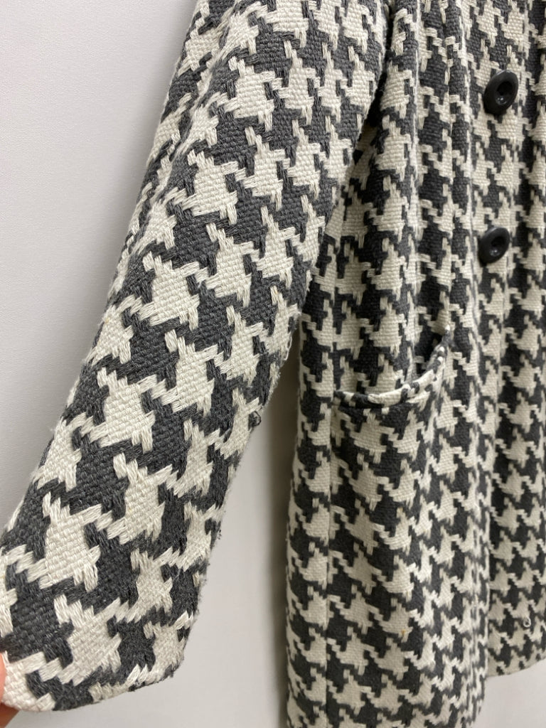 Size 14 White Gray Houndstooth Button Up Ladies Jacket