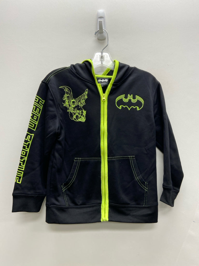 SIZE 7 Black Neon Green Batman Zip Down Hooded Boy's Jacket