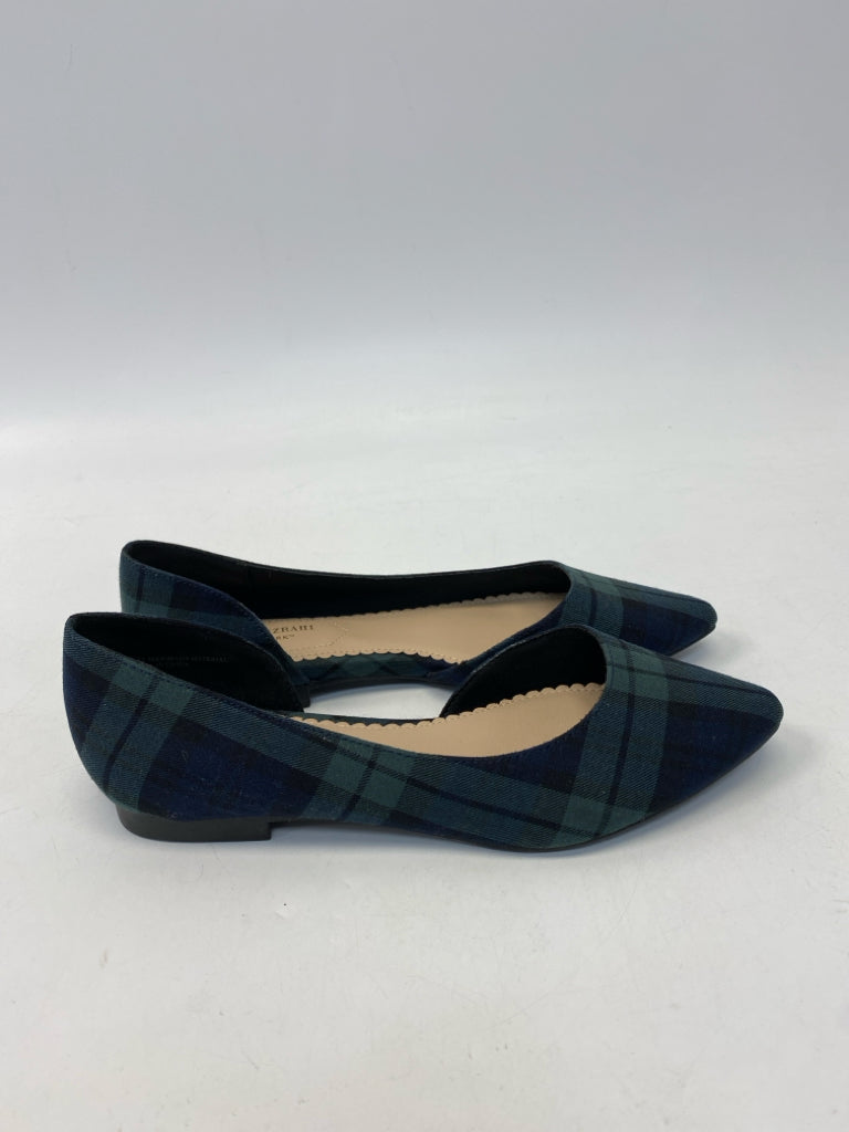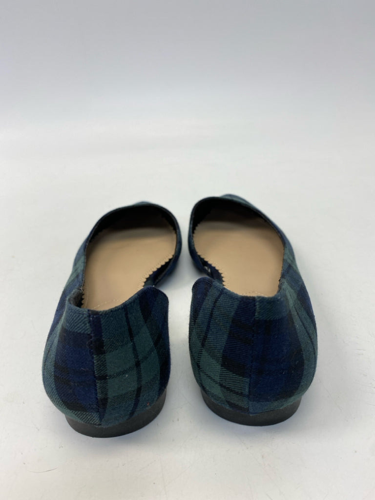 Size 7 Green Navy Plaid Flats