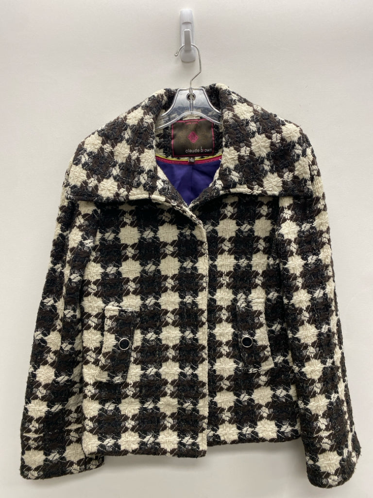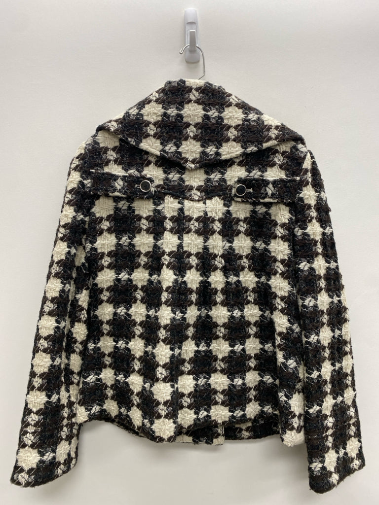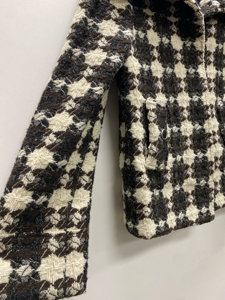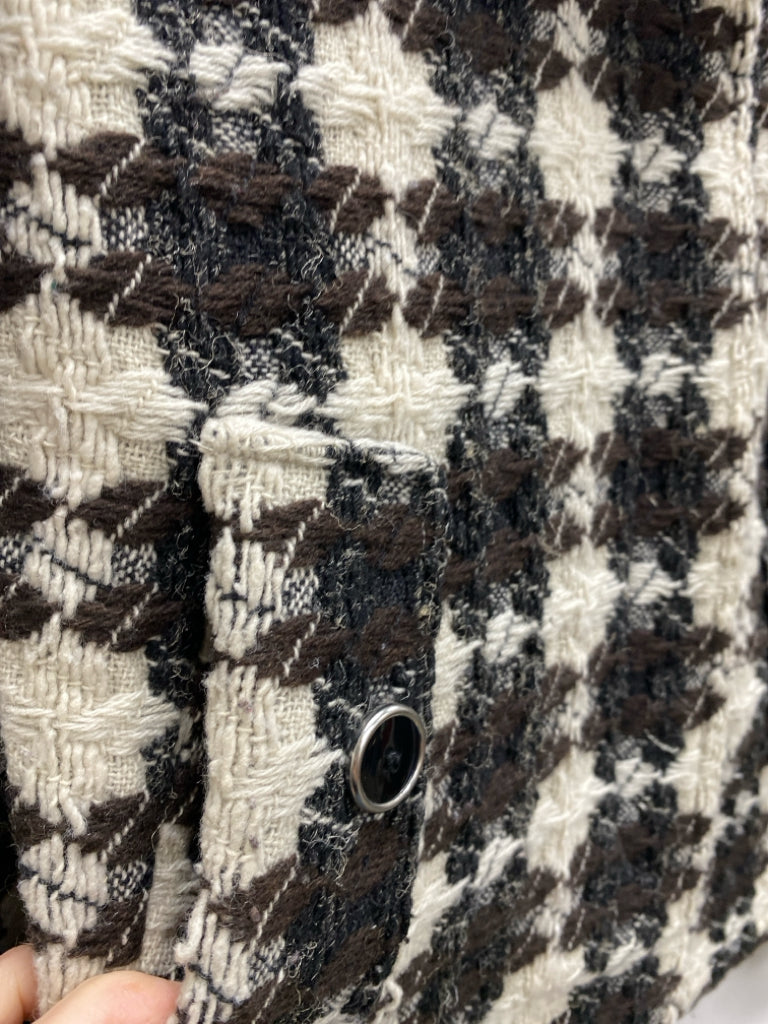 Size 8 Cream/Brown Black Woven Button Up Ladies Jacket
