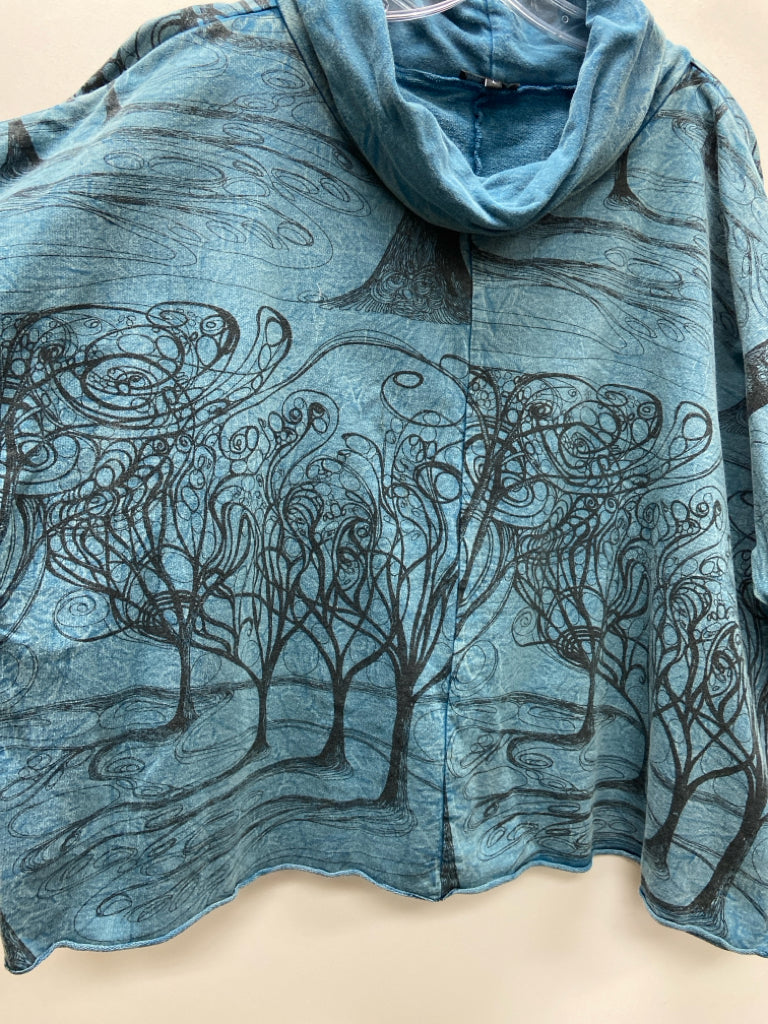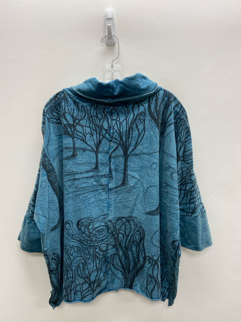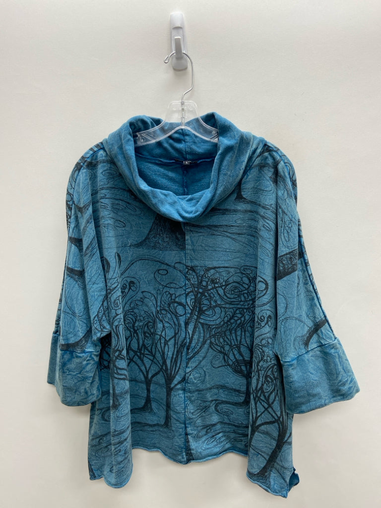 Size L Blue Black Trees Shawl Collar Ladies Top