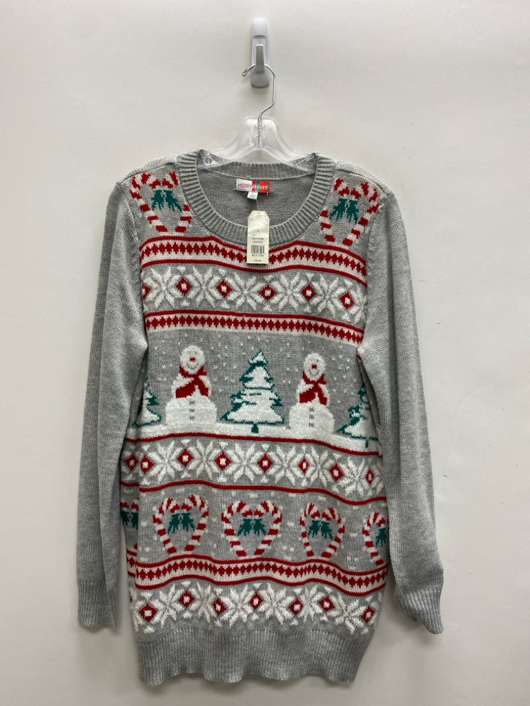 Size L Gray/White Red/Green Snowman Ladies Sweater