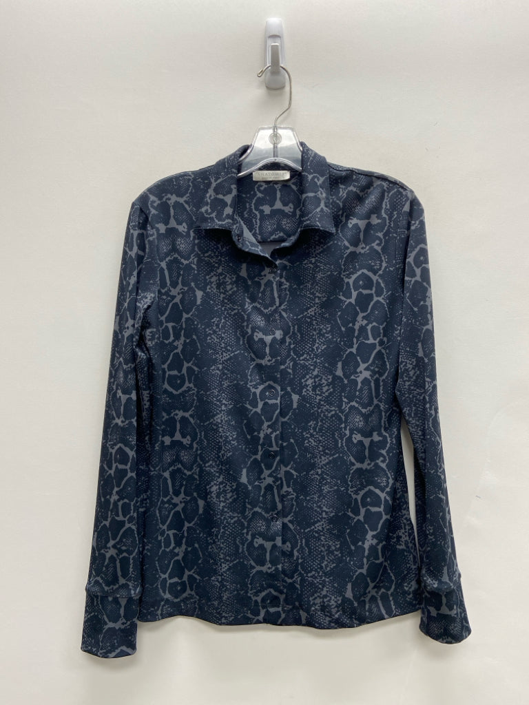 Size S Black/Gray Animal Print Button Up Ladies Top