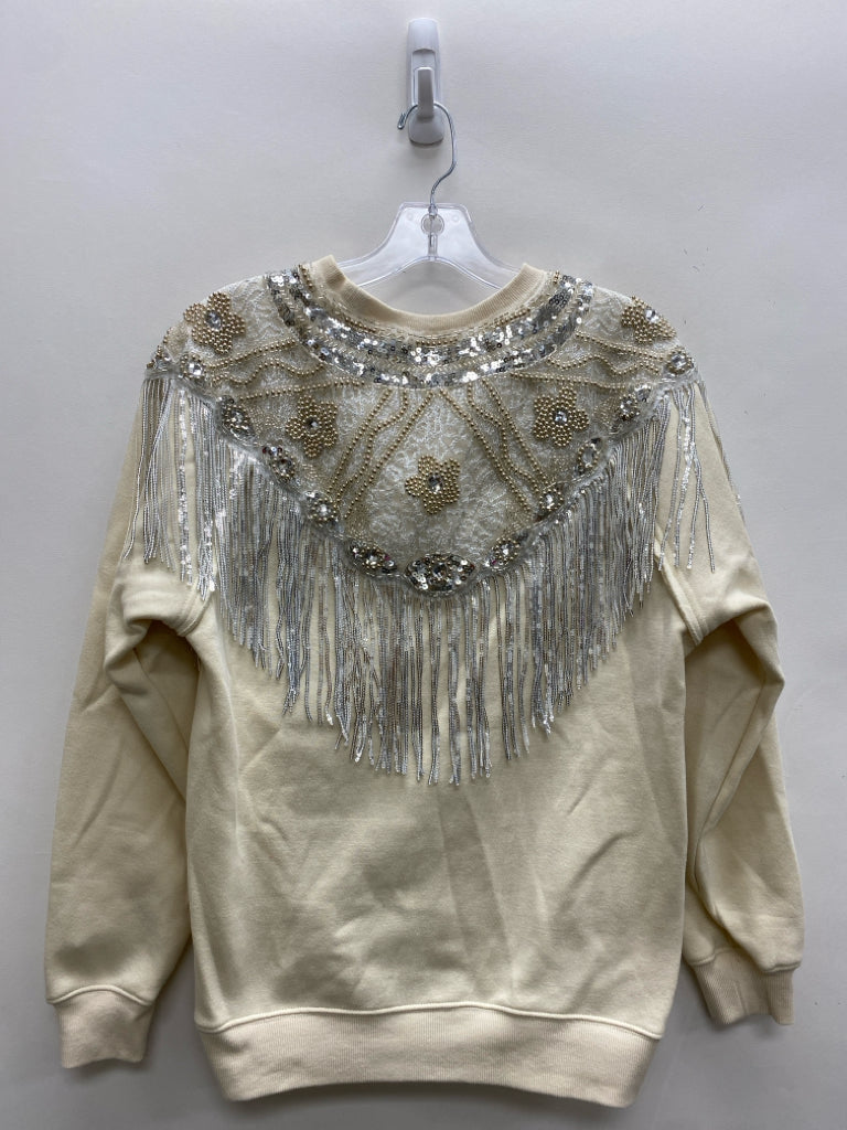 Size S Cream Gold/Silver Sequins Embroidered Ladies Top