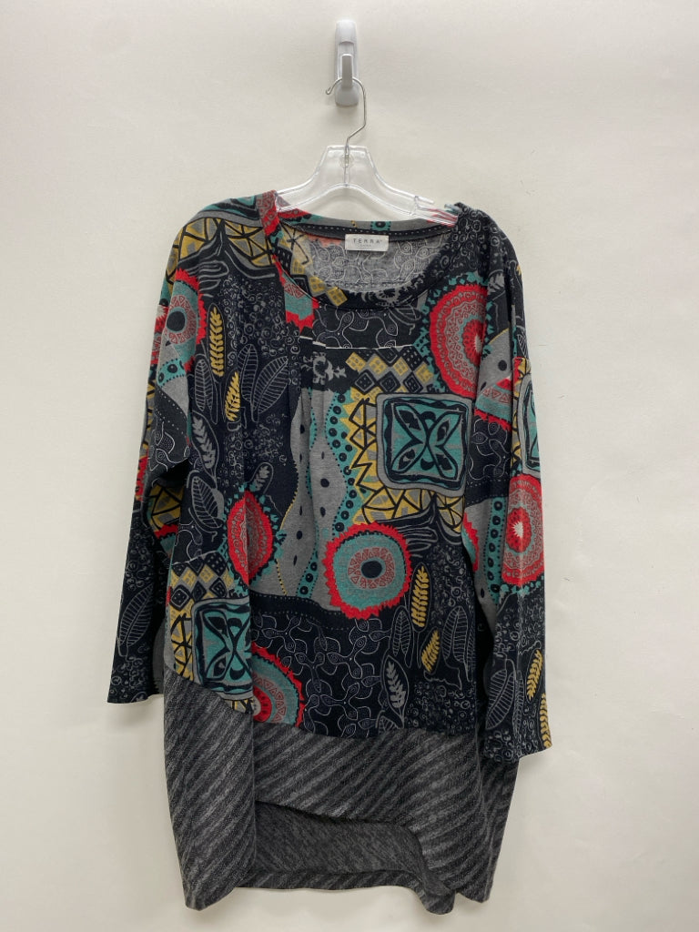 Size XL Gray/Black Green/Multi Abstract Tunic Ladies Top