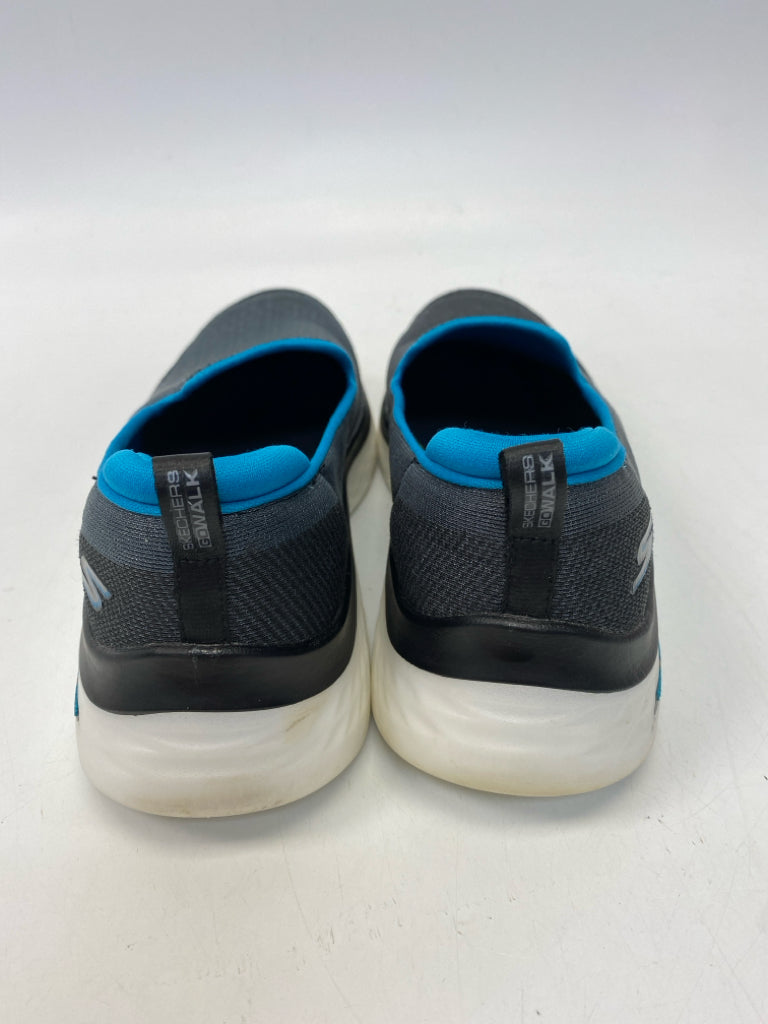 Skechers Size 8.5 Dark Gray Turquoise Trimmed Sneakers