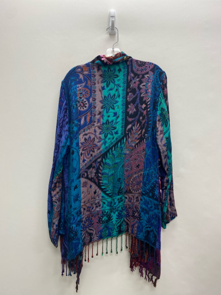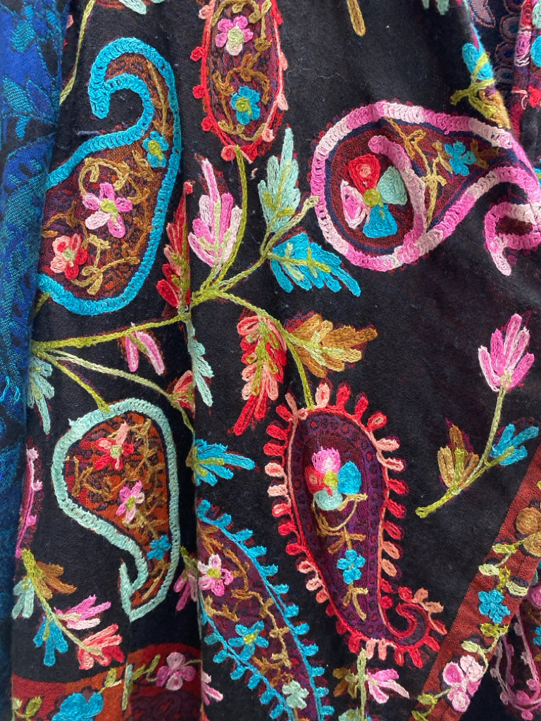 Soft Surroundings Size L Black Blue/Multi Flowers Embroidered Ladies Sweater