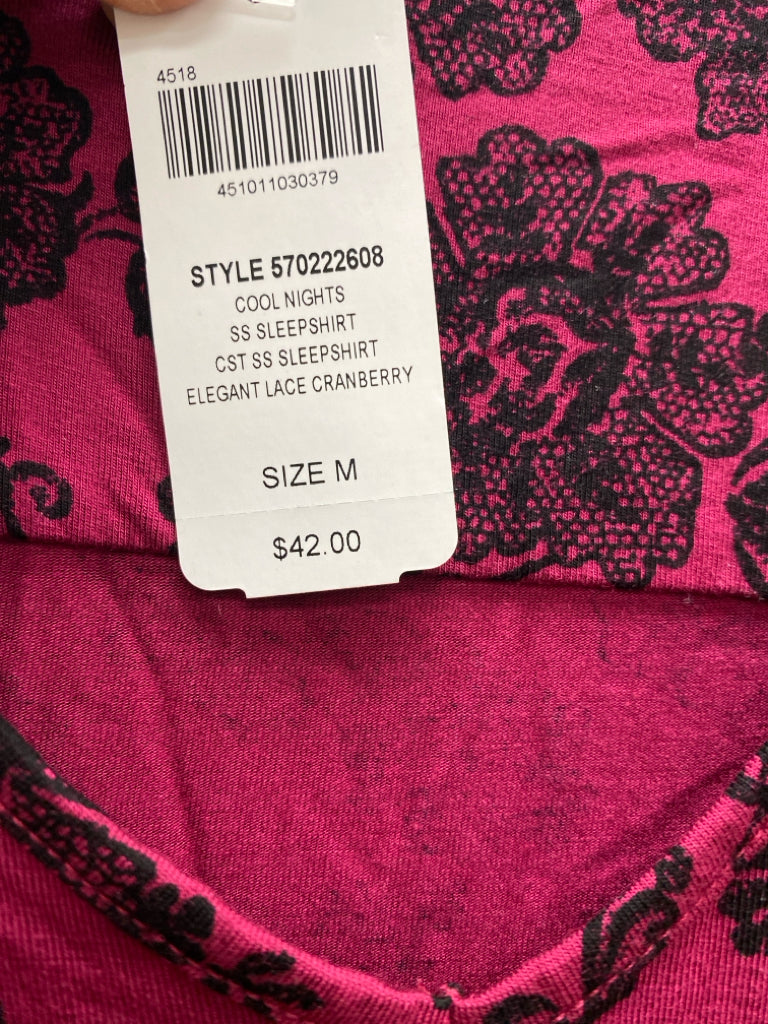 Soma Size M Cranberry Black Floral Ladies Nightshirt