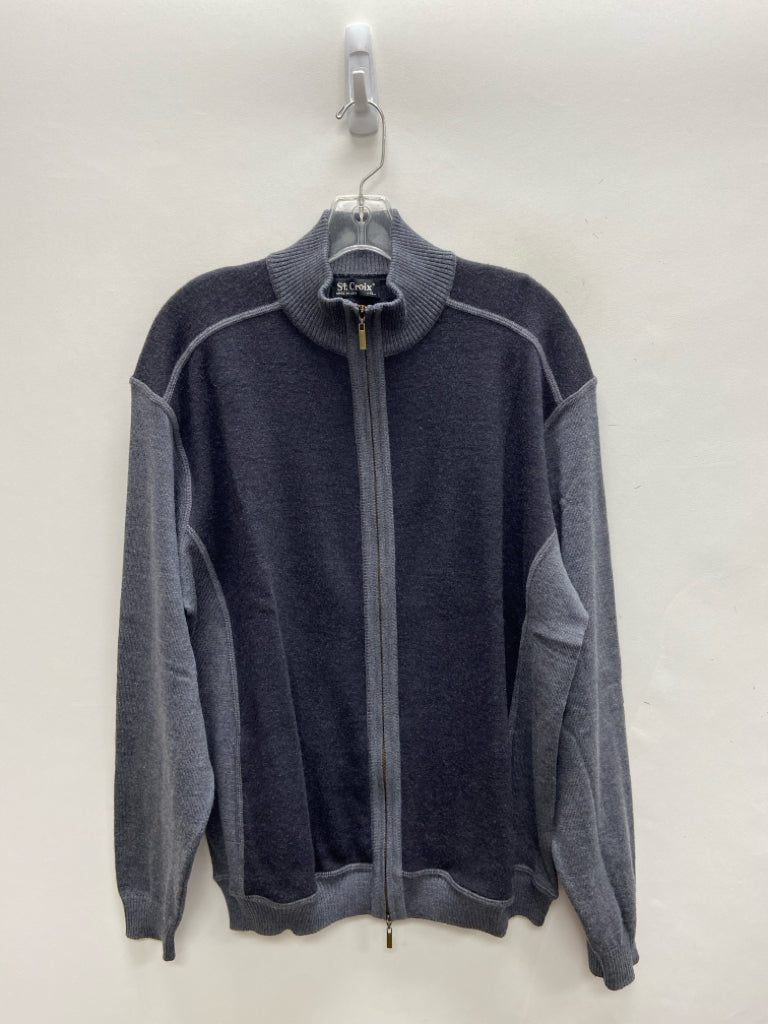 ST.CROIX Size XL Black Gray Color Block Zip Down Men's Sweater