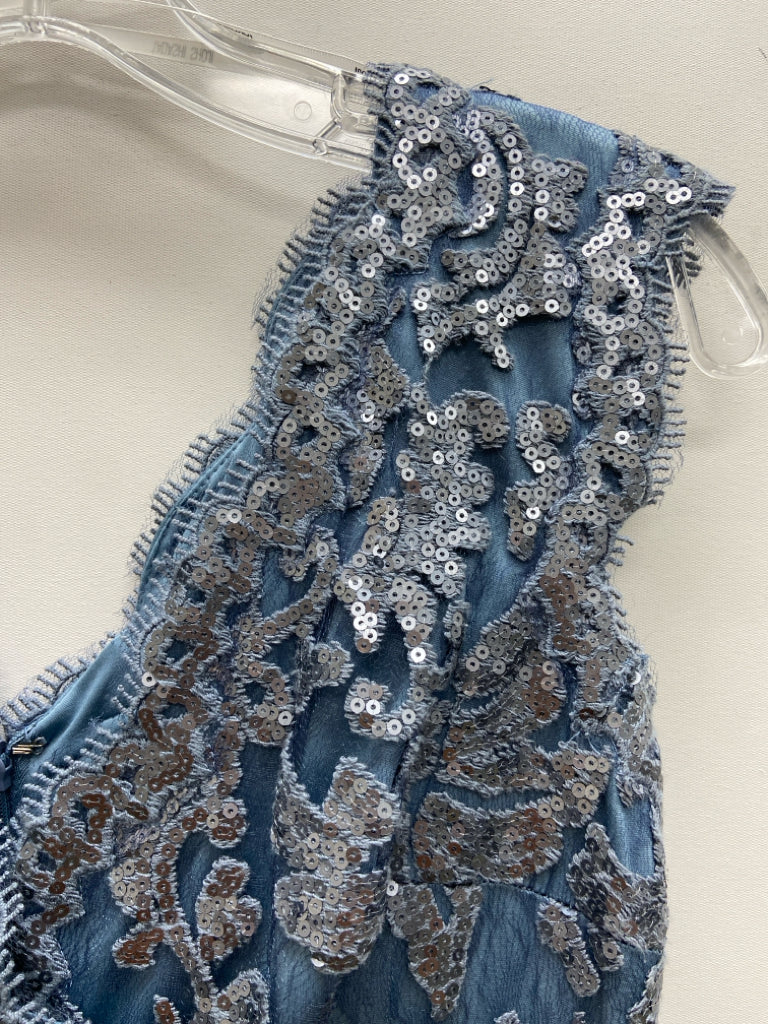 Tadashi Shoji Size 6P Slate Blue Sequins Sleeveless Petite Dress