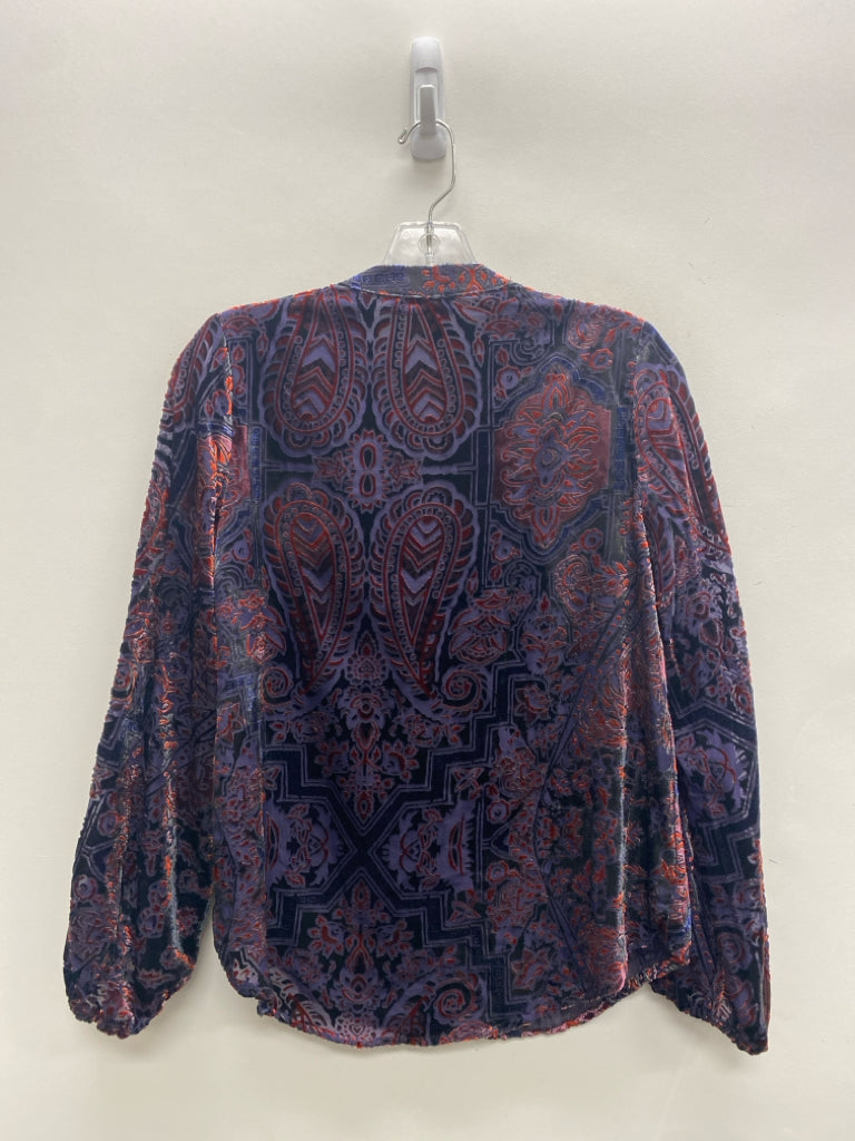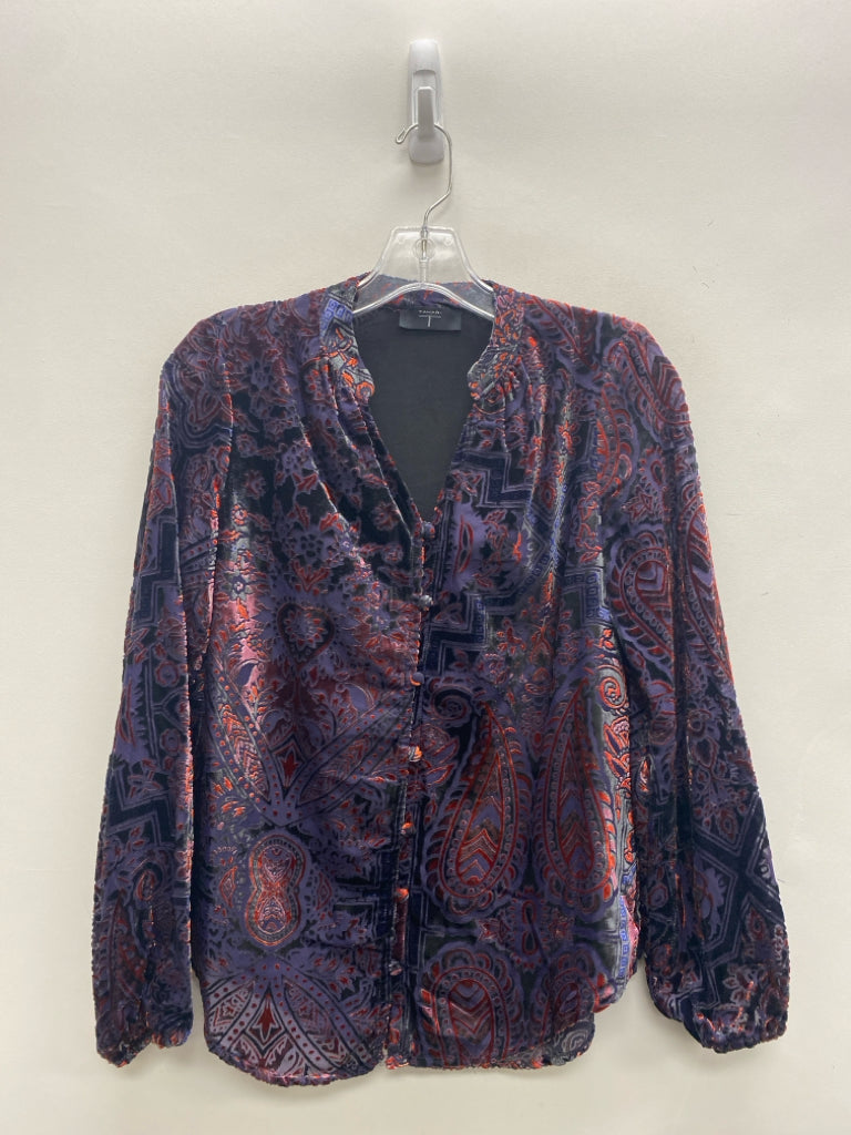 Tahari Size SP Purple Red/Black Paisley Button Up Petite Top