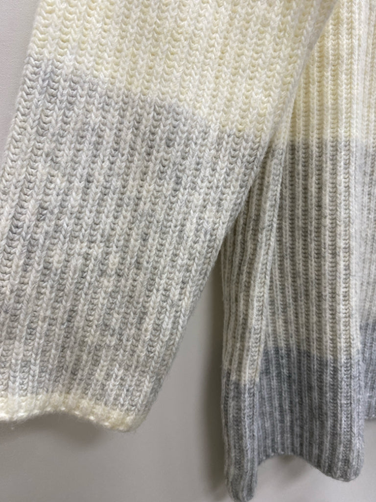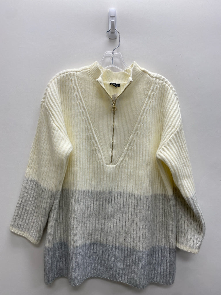 Talbots SIZE 1X Cream Gray Striped Quarter Zip Plus Size Sweater