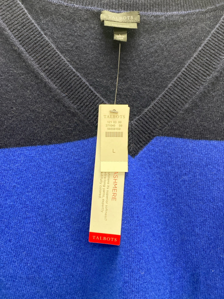 Talbots Size L Navy/Blue Aqua Striped Cashmere Ladies Sweater