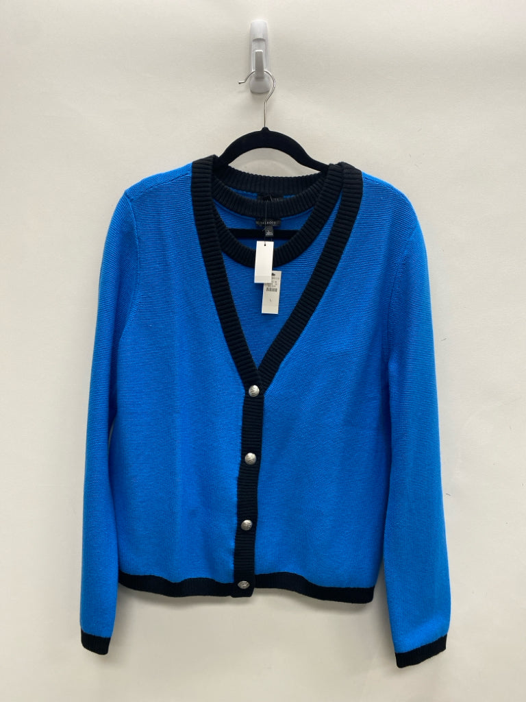 Talbots Size L Turquoise Black Trimmed Cardigan Ladies Sweater