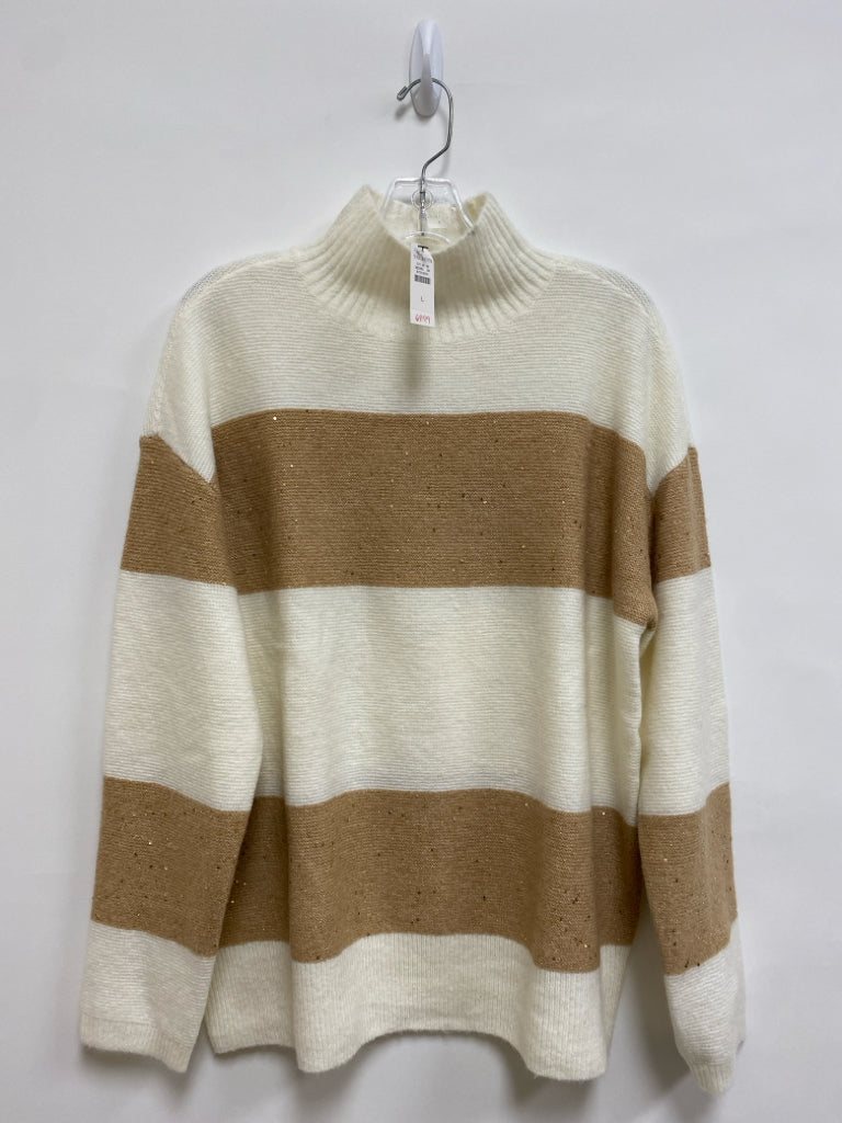 Talbots Size L White Tan Striped Turtleneck Sequins Ladies Sweater