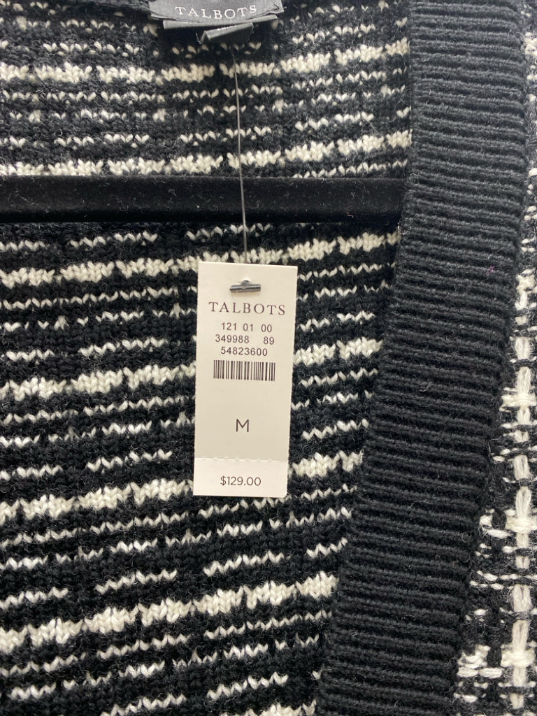 Talbots Size M Black White Woven Cardigan Ladies Sweater