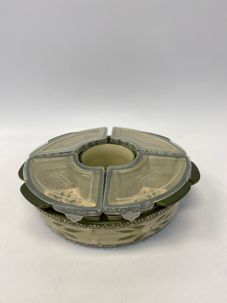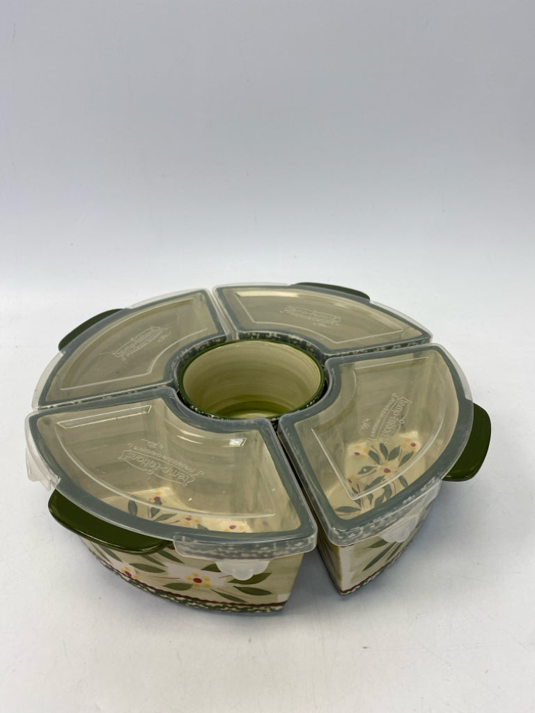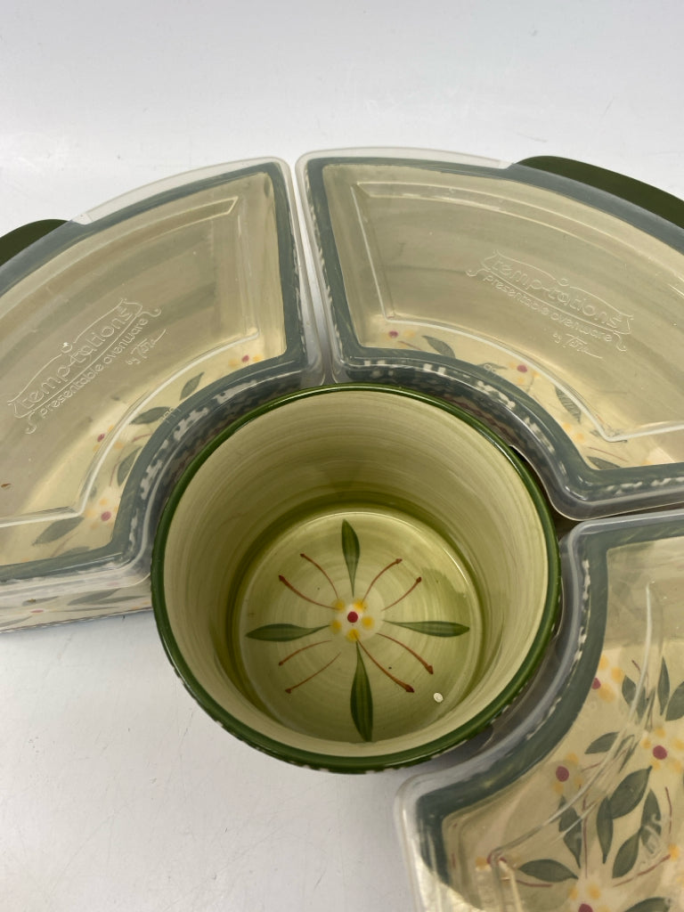 Temp-tations Green Cream Print Ceramic/Plastic Chip n Dip