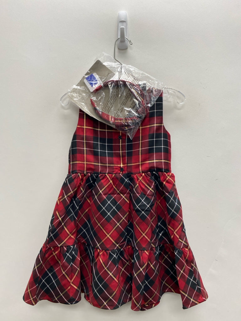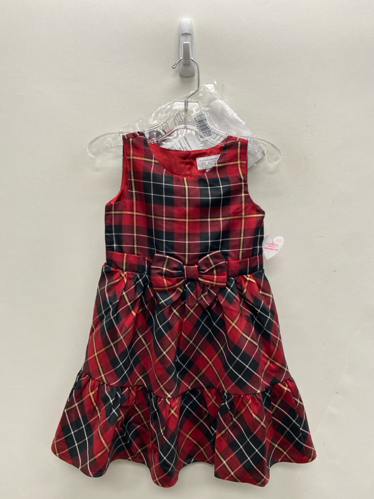 The Place SIZE 5T Red Black/Gold Plaid Sleeveless Girl's Dress