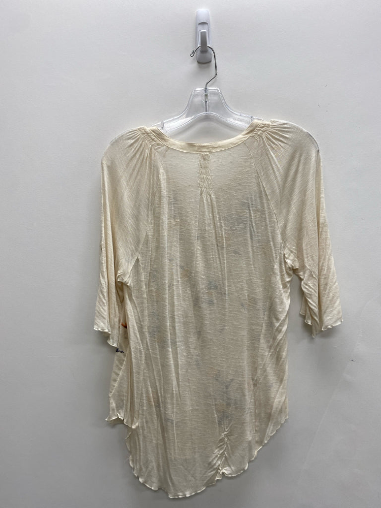 Tiny Size L Cream Yellow/Green Flowers Embroidered Ladies Top