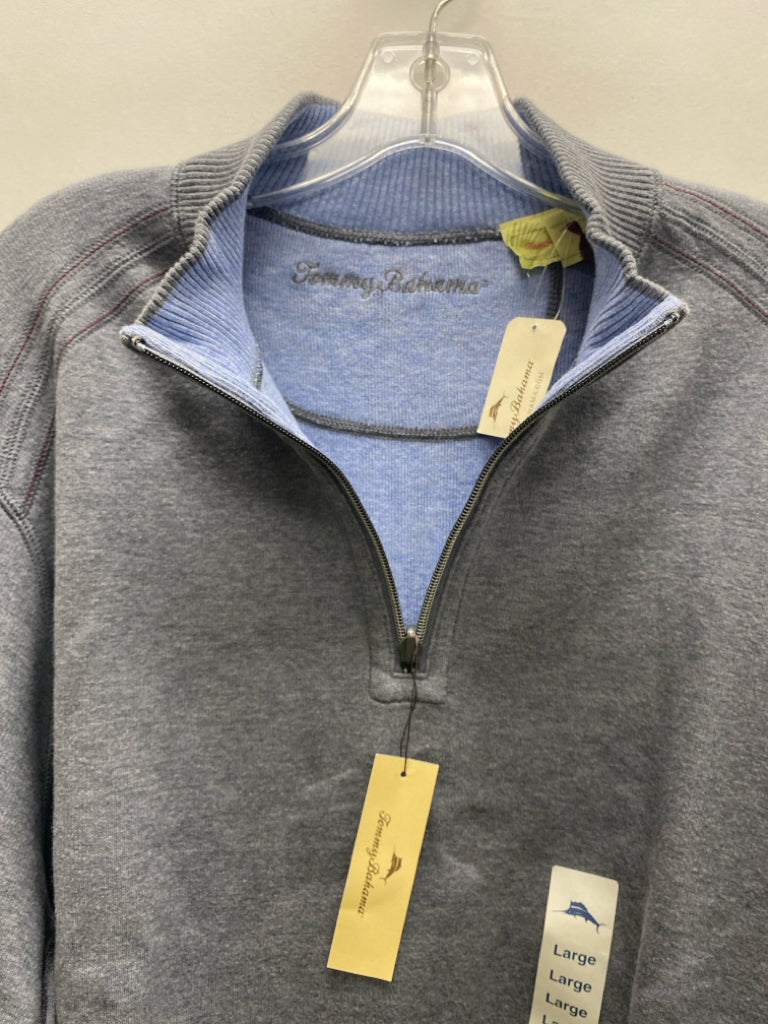 Tommy Bahama Size L Gray Stitching Quarter Zip Men's Long Sleeve Shirt