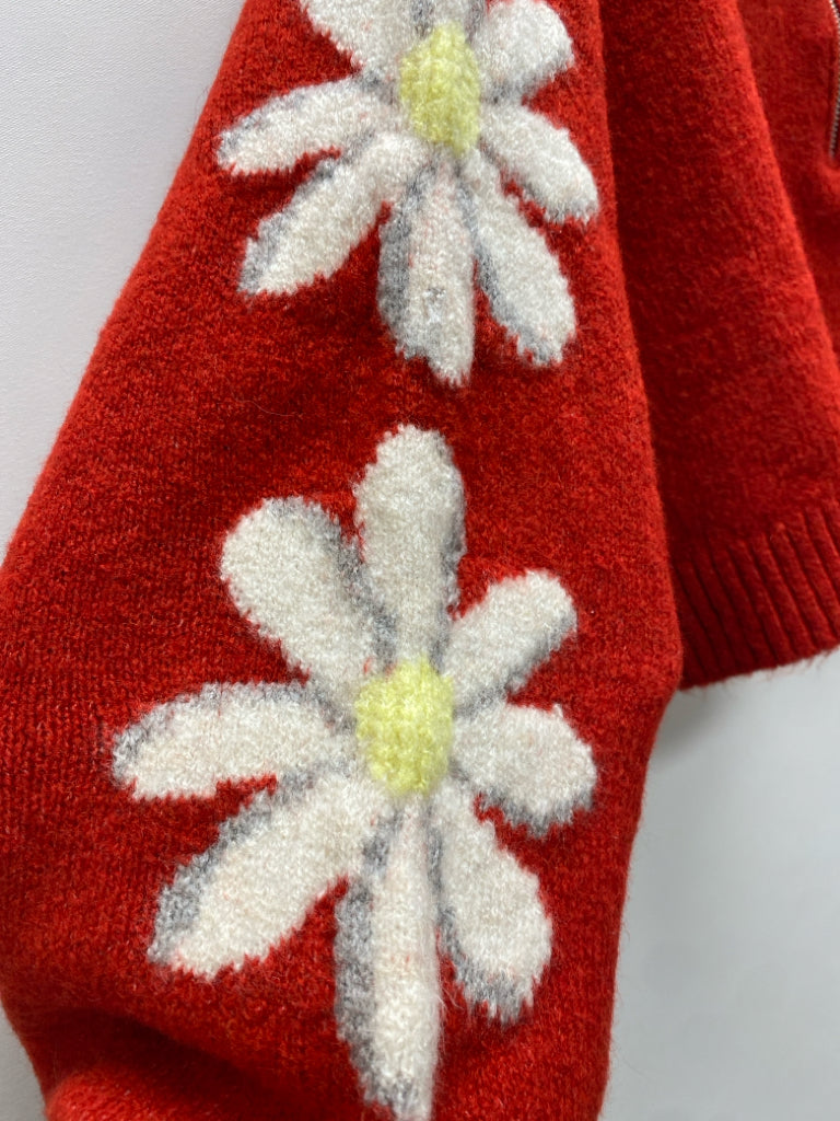 TOPSHOP Size 2 Red White Flowers Ladies Sweater