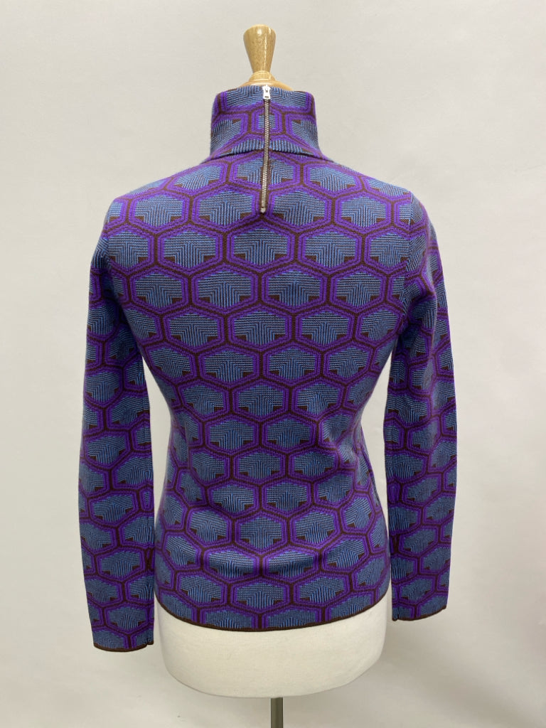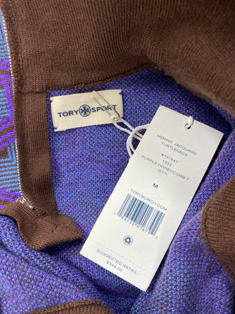 Tory Burch Size M Purple Blue/Brown Honeycomb Turtleneck Merino Ladies Sweater