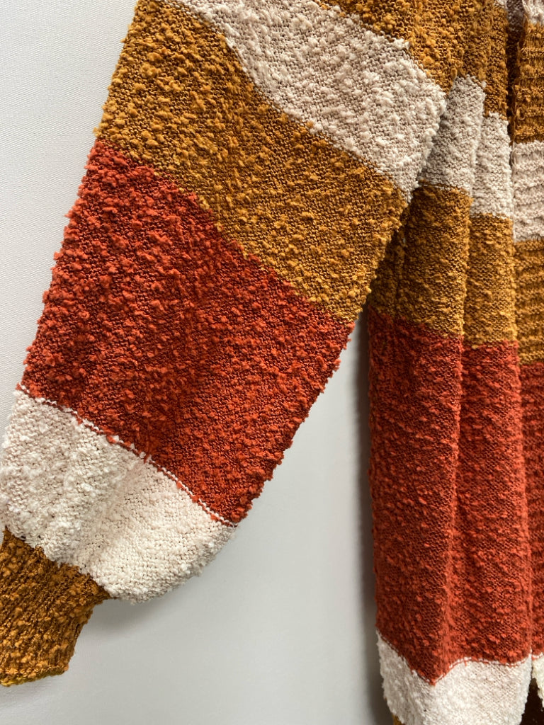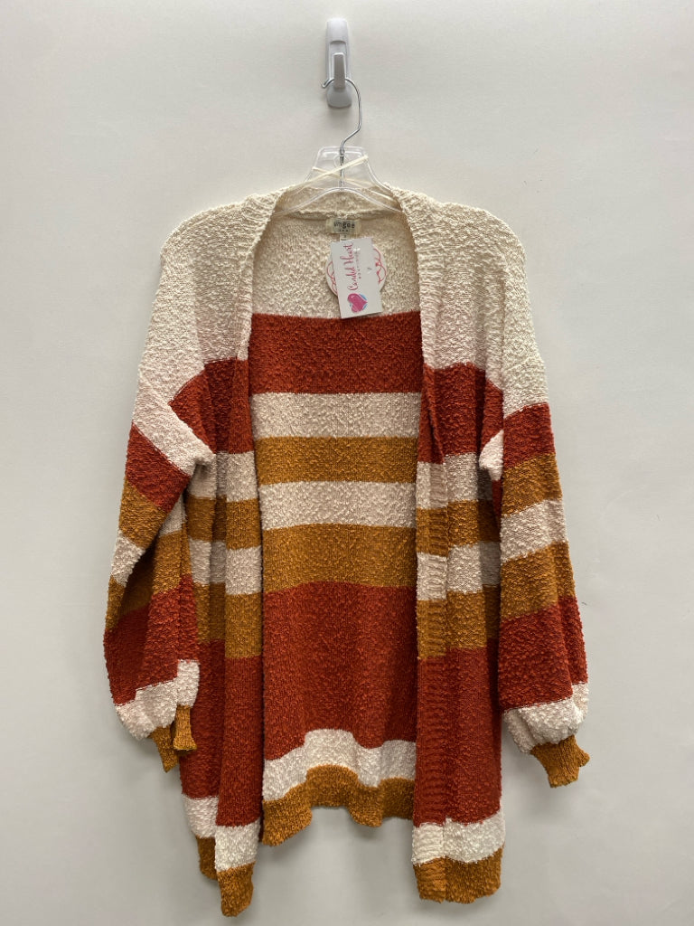 Umgee Size S Cream Tan/Orange Striped Drape Ladies Sweater