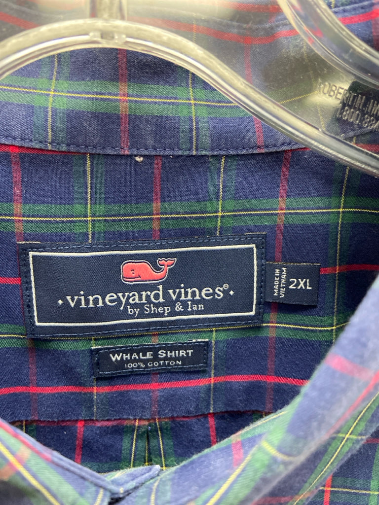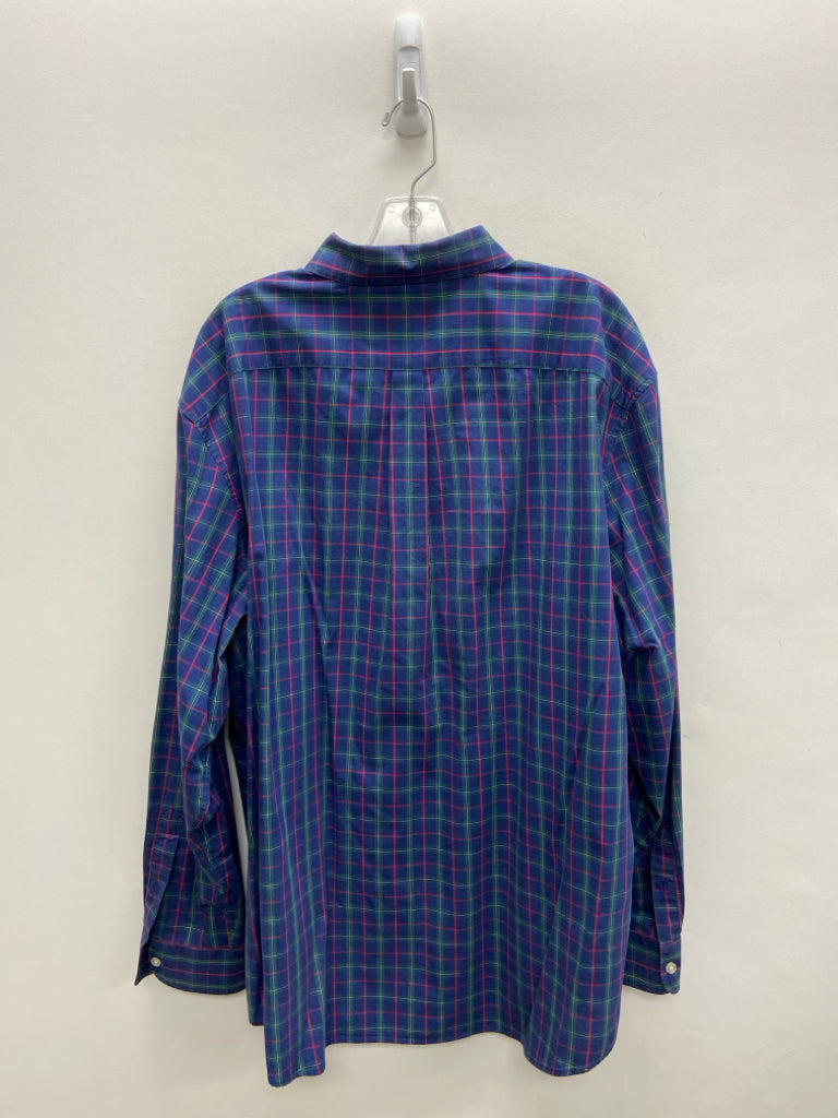 Vineyard Vines Size 2X Navy Pink/Green Checkered Men's Long Sleeve Shirt